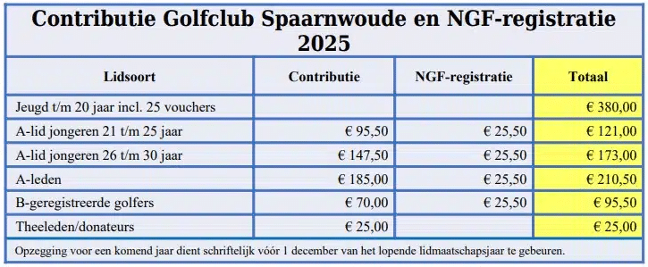 Het jeugdlidmaatschap (t/m 20 jaar) bedraagt €380,00 per jaar. Hiervoor krijg je les, trainingen, baanlessen en kun je meedoen aan wedstrijden en activiteiten tijdens de vakanties. Ook ontvang je 25 baanvouchers om zelf te golfen op de banen van Golfbaan Spaarnwoude.